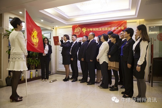 团队全体成员在领誓人带领下庄严宣誓成为牛律师刑辩深圳团队一员!并郑重承诺:以团队利益为最高利益,以“标准化、流程化、可视化”为工作要求!